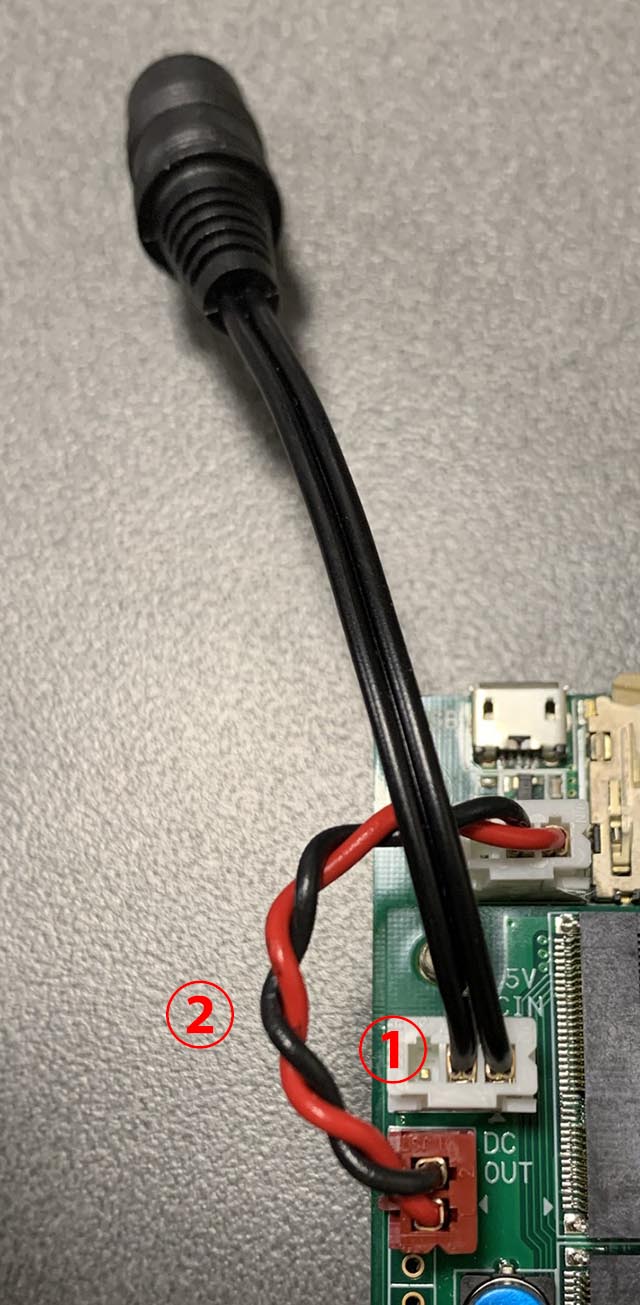 DSPボード上の電源コネクタに外部電源中継コネクタを取り付けます。