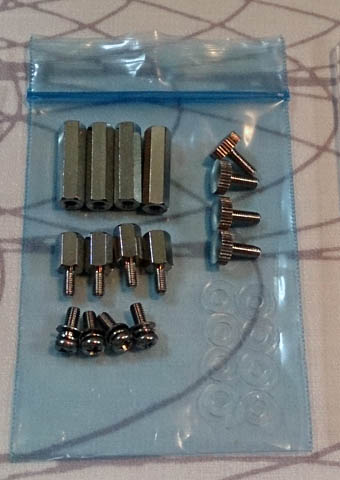 5.モジュールを接続し、マザーボード上から飛び出たネジにモジュール四隅の穴を通します