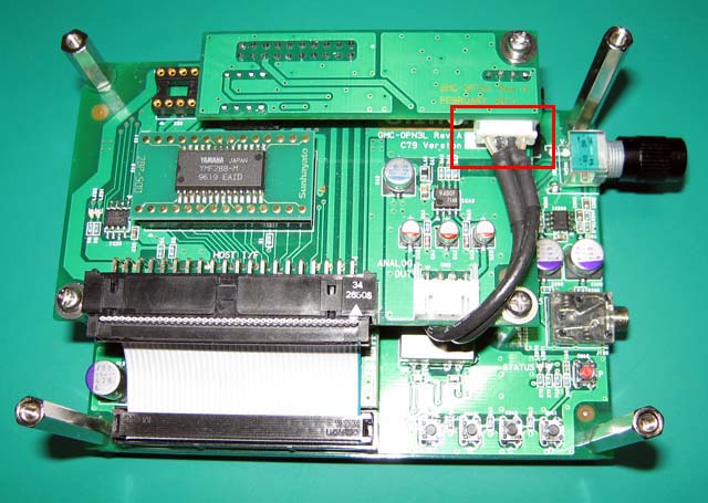 一緒にOPN3モジュール右端に装着されている4ピンコネクタを抜き、DAC基板に装着しておきます。