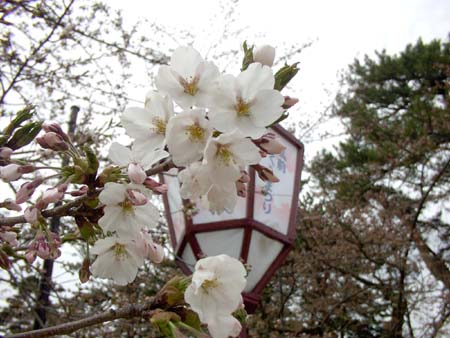 1時間後、弘前公園到着。 ねぷた村の駐車場に駐車。(1時間200円) とぼとぼと公園入り口まで向かう途中 気の早い団体とすれ違う。関西弁でした。 桜前線と共に北上中? かと思えば、シーズン本番へ向けてか、バスガイドの集団も。 客の代わりに、同じ制服の女性がぞろぞろ歩いている。美人。 外堀近辺を見てみる。 数は少ないが確かにぽつぽつと咲き始めている。 そして、亀甲門(かめのこうもん)から |